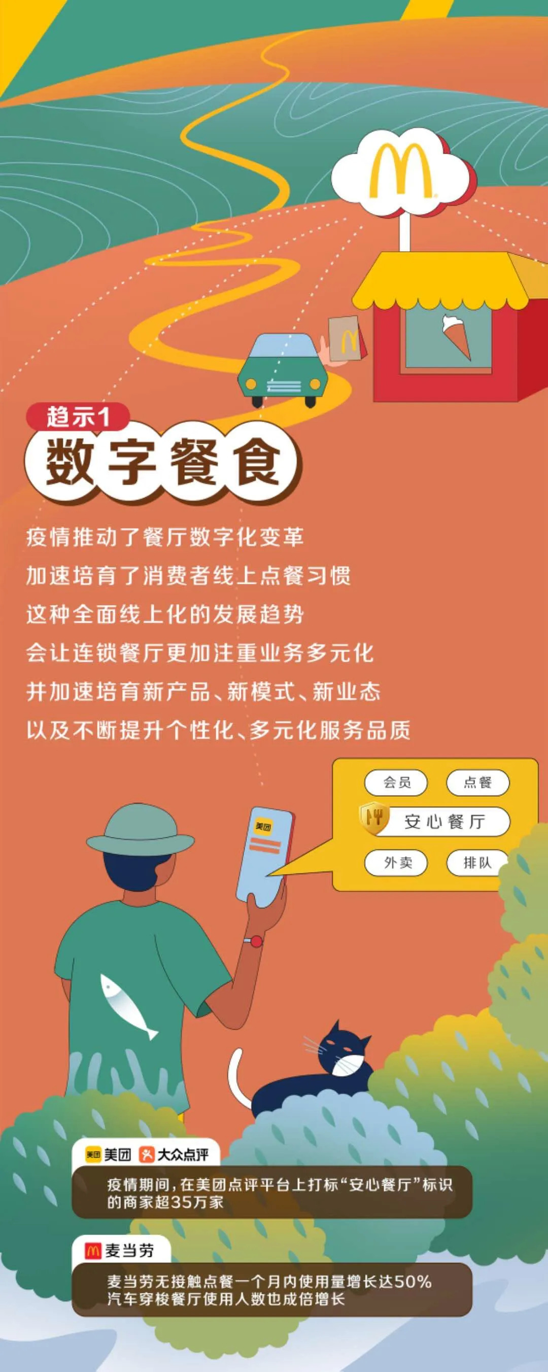 2020年初突如其来的疫情,对餐饮行业的改变是巨大的,并将对餐饮业带来长远的影响。针对疫情初期至今的市场变化,麦当劳和美团点评联合推出了《餐饮未来趋“示”》报告,如下,enjoy: