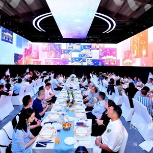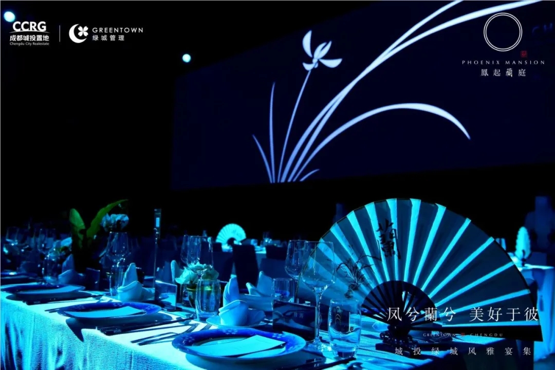 当晚宴集现场最令人印象深刻的当属案名揭晓的时刻,随着银幕上“凤凰于飞”,引入成都青羊七源,在稚童朗朗的诵读声中,吟唱青羊的千古诗文流淌于会场荧屏,“君子如蘭 空谷幽香”凝聚而成。