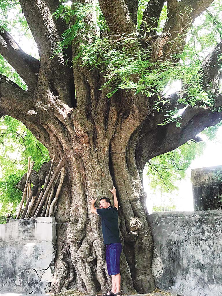 6月19日中午,记者慕名寻访,在东方市新龙镇龙卧村东侧,见到了这株“千年老寿星”。