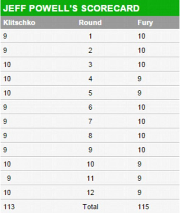 这是一个几乎让观众疯狂的结局。克利钦科的拳法使得泰森摇摇欲坠、几乎倒下。但这位曼彻斯特巨人站住了,并最终以两分优势赢得这场比赛。