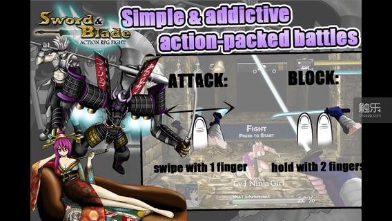 App Store里的预览图很好地说明了游戏的划动战斗方式,等等,这个妹子是怎么回事儿?