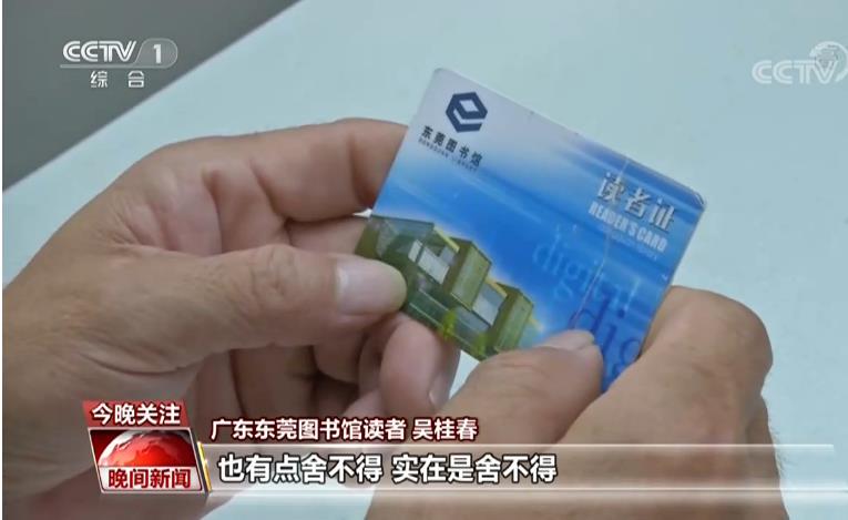 广东东莞图书馆读者 吴桂春:(读者卡)在手上,在身上都拿了十几年。现在就把它退了,退的时候,有点舍不得,实在是舍不得。