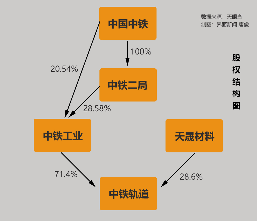 中铁轨道于2018年1月成立,今年6月3日其注册资本由9000万增长至5.5亿元,控股股东中铁工业持有其71.4%的股份,天晟材料(300169.SZ)持有28.6%股份。
