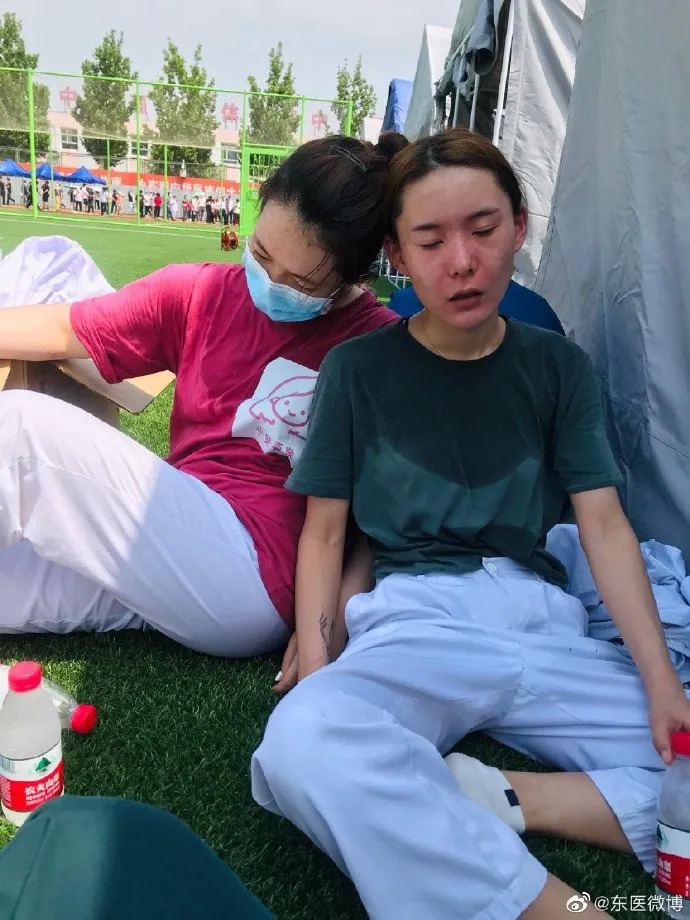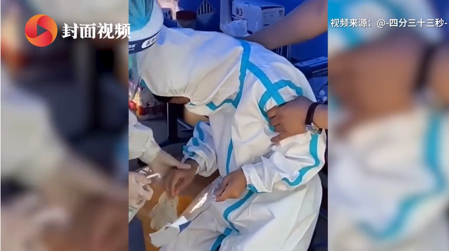在北京某批发市场附近,一名护士给市民核酸检测采样时中暑晕倒,事后却说:“对不起,给大家添乱了。”
