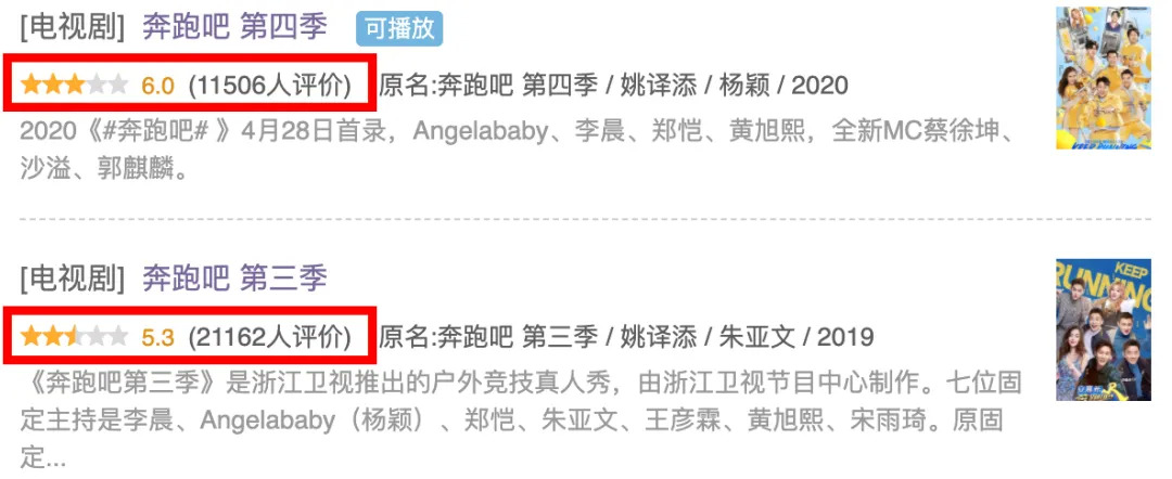 经历固定嘉宾重大换血的《奔跑吧2019》让“跑男”系列一度降至谷底,豆瓣评分也来到了整个系列的最低分。而《奔跑吧2020》固定嘉宾再度换新,豆瓣评分、收视率的上涨在说明节目改变成效初显。然而,两极分化的评论始终带着些不安的因素。
