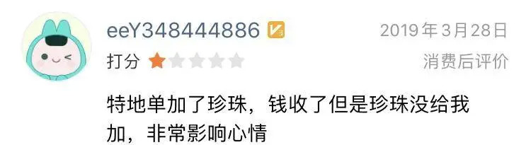 2、“钱收了,但珍珠没给我加,非常影响心情”