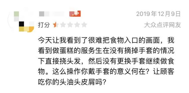 戴手套——这个举动已经是在注意食品安全、加强卫生管控了。但不摘手套就挠头,相当于前面所有食安管控功亏一篑。