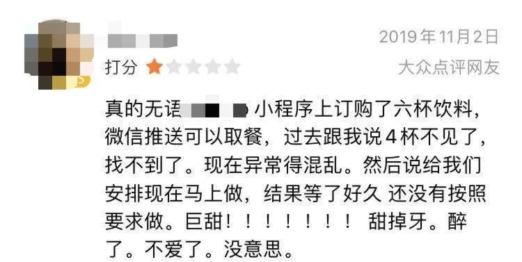 所有差评中,由小程序、平台外卖、门店点单不同线交叉导致的混乱、漏单和等待延长,也是“激怒”顾客的一个重要因素。