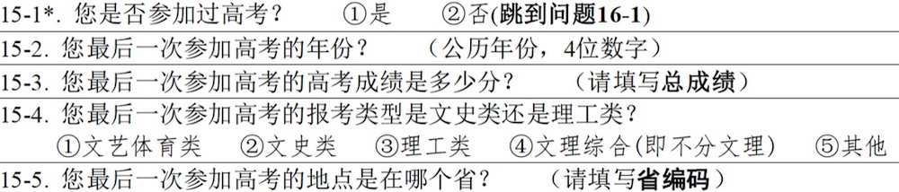 问卷中有这样的问题,记录了每一名受访者的高考年份、类型、分数、地点。