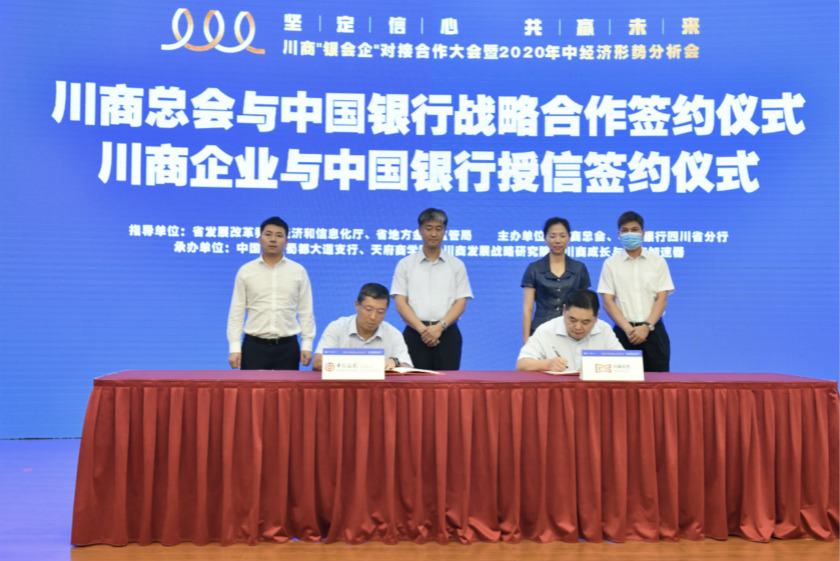6月30日下午,由川商总会、中国银行四川省分行联合主办的川商“银会企”对接合作大会暨2020年中经济形势分析会在成都举行。