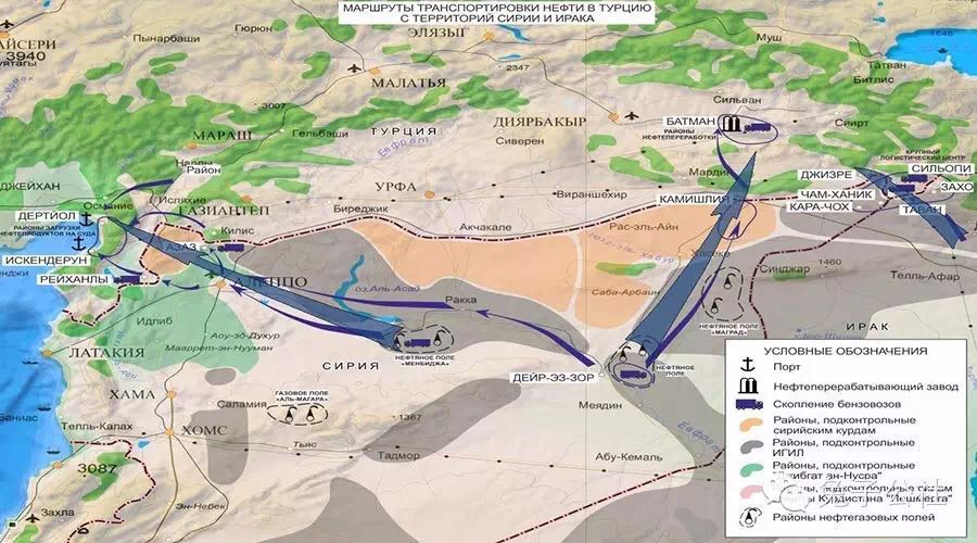 俄罗斯展示的土耳其获取ISIS石油主要路线
