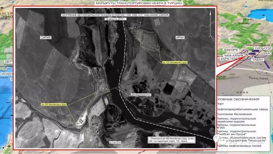 据俄军方表示,为开展非法石油贸易,“伊斯兰国”动用的运油车不少于8500辆,每昼夜最多运输石油20万桶。而最近一周,近2000名武装分子、超过120吨武器弹药和250辆各类型汽车从土耳其进入叙利亚境内。