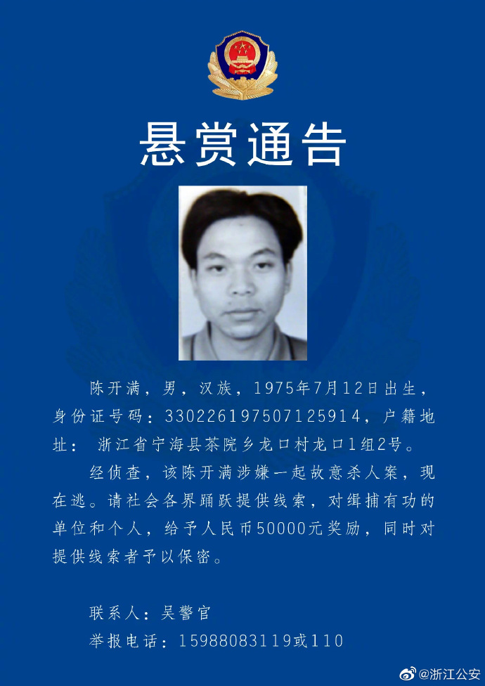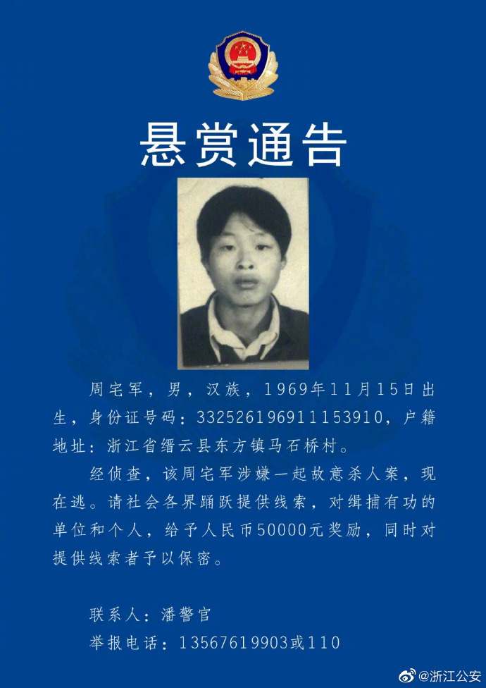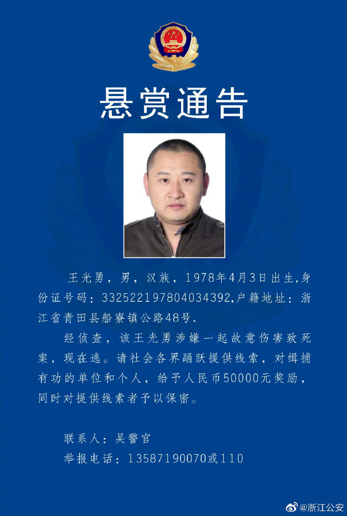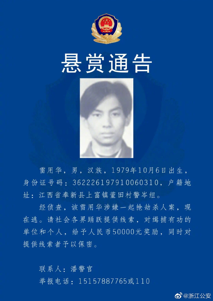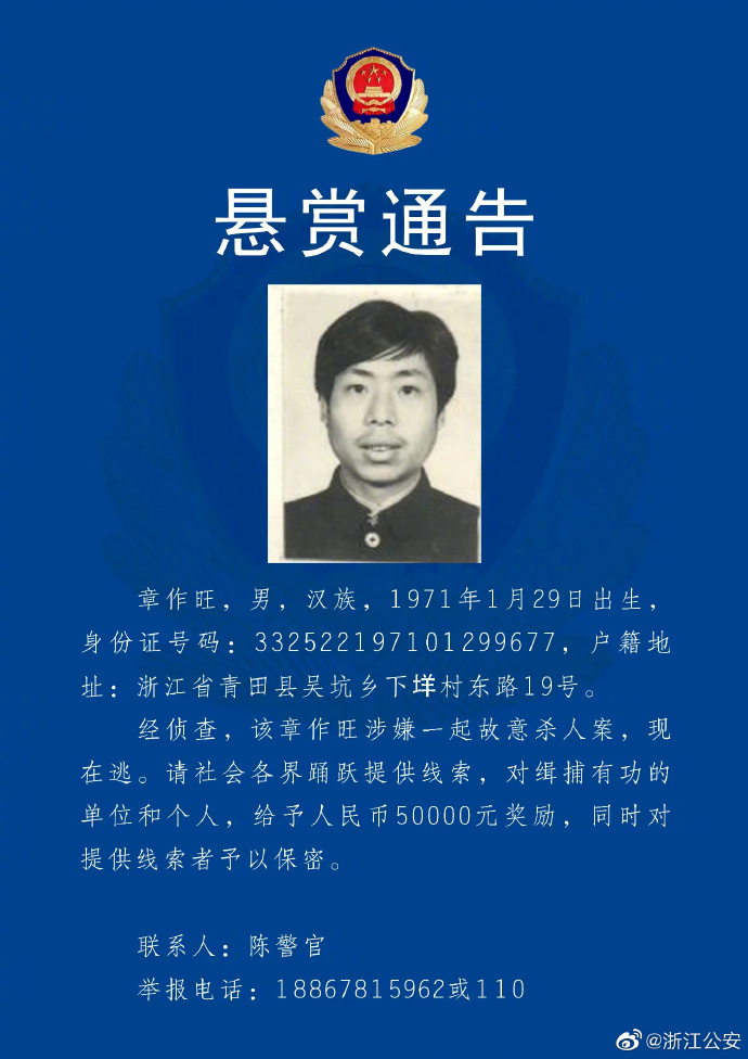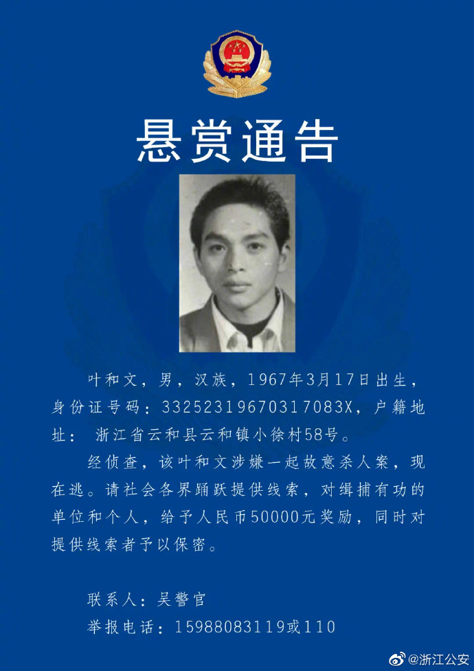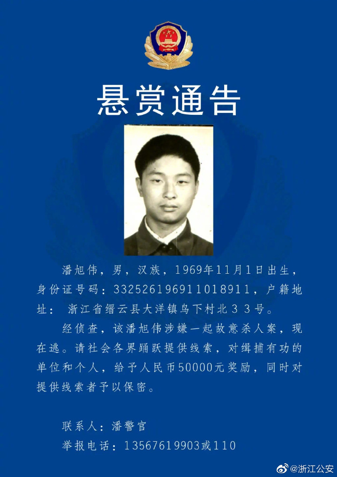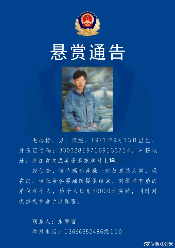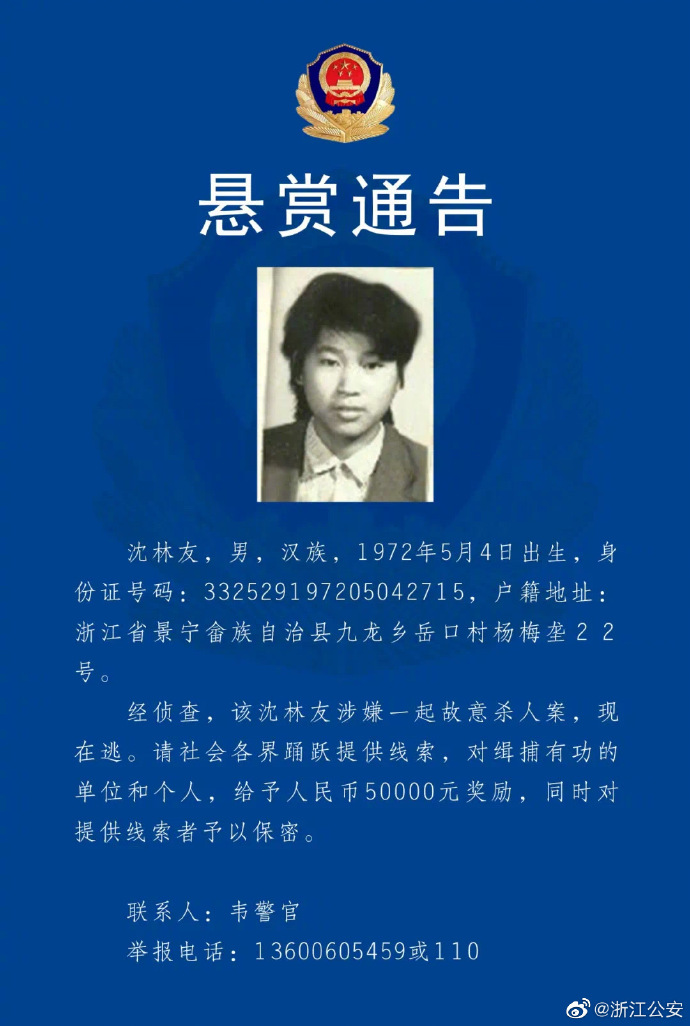 悬赏总额50万!浙江丽水警方通缉这10名命案在逃人员