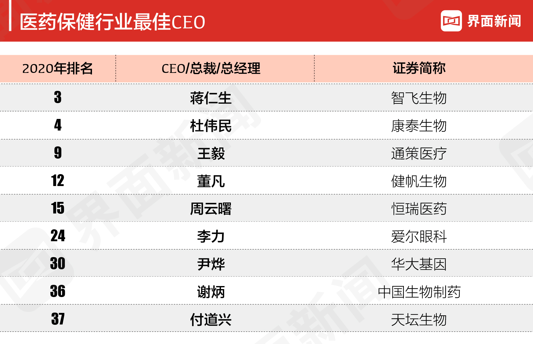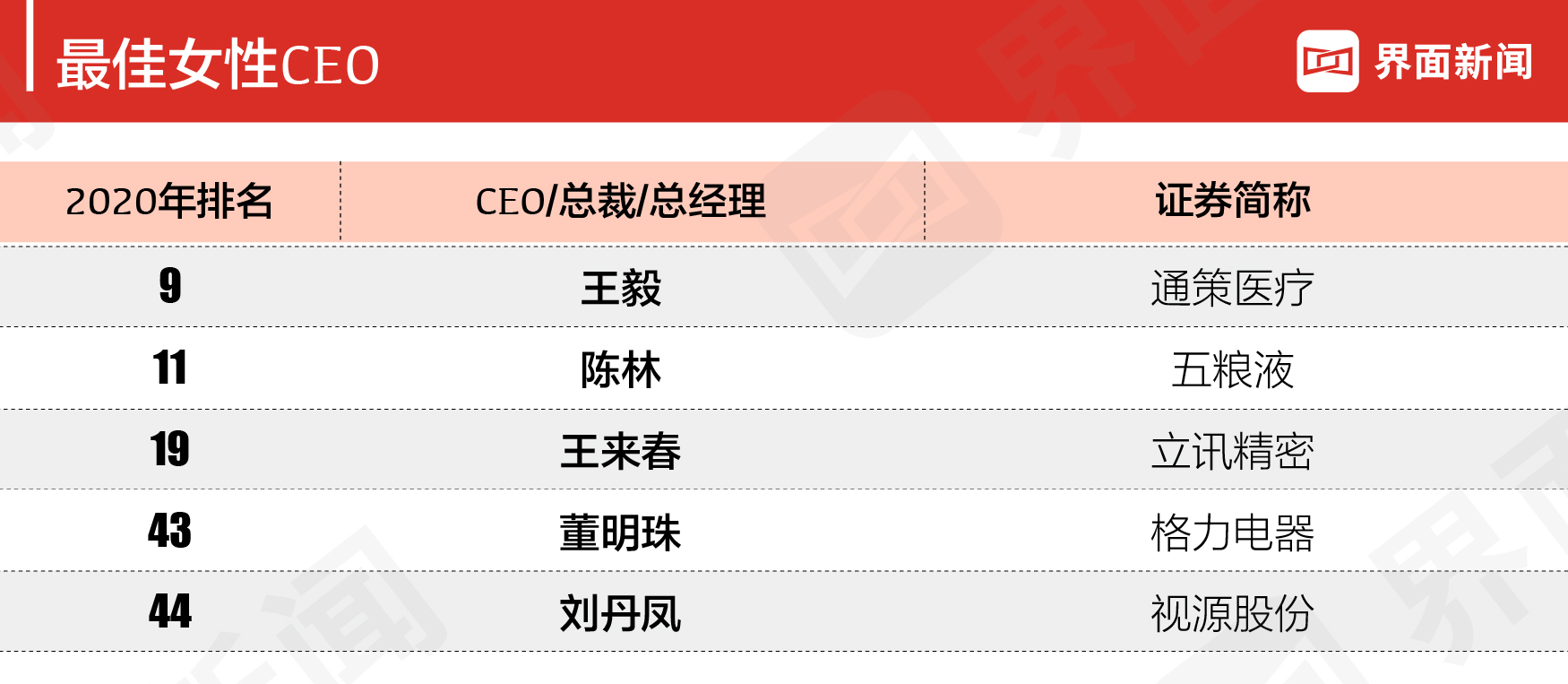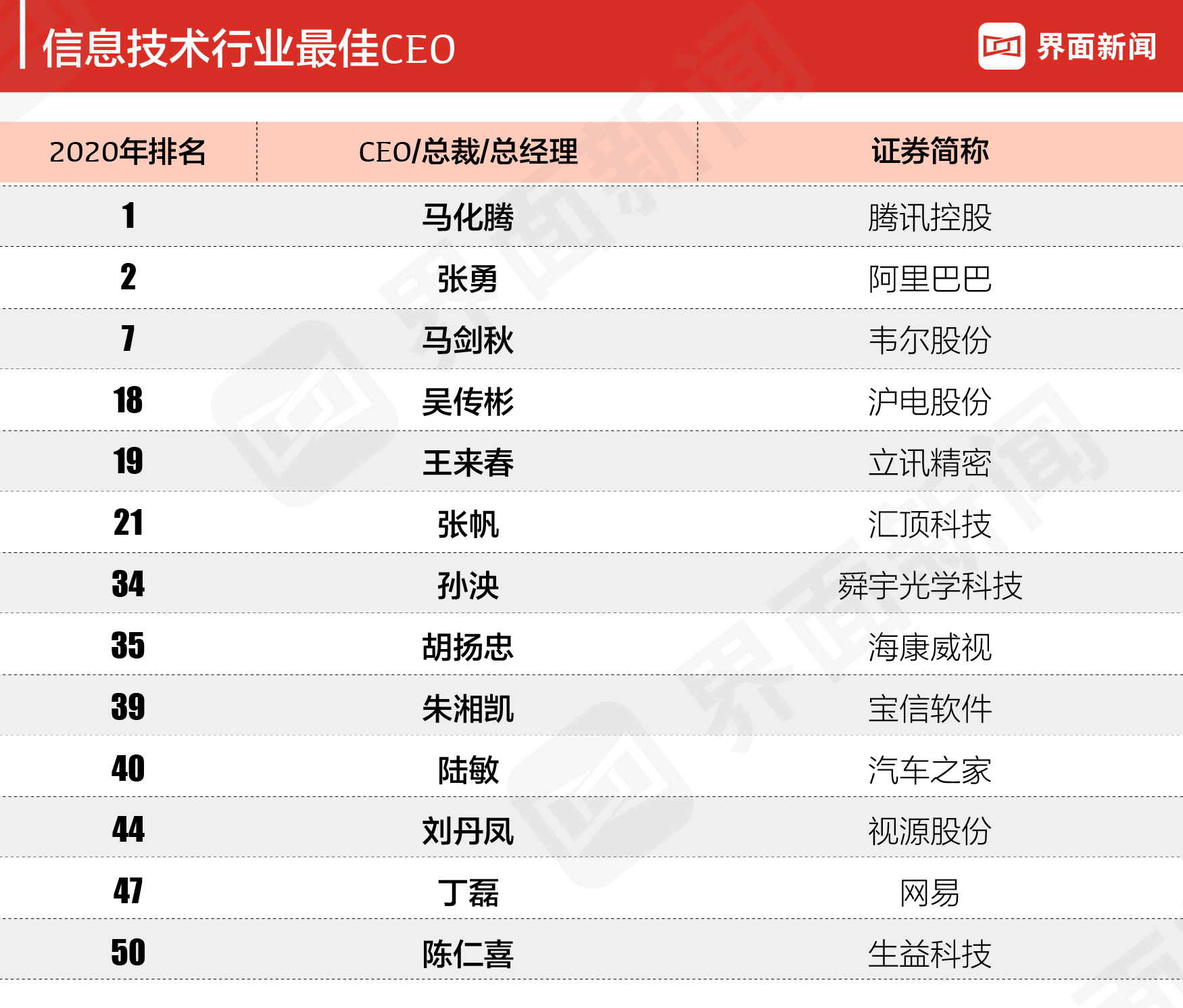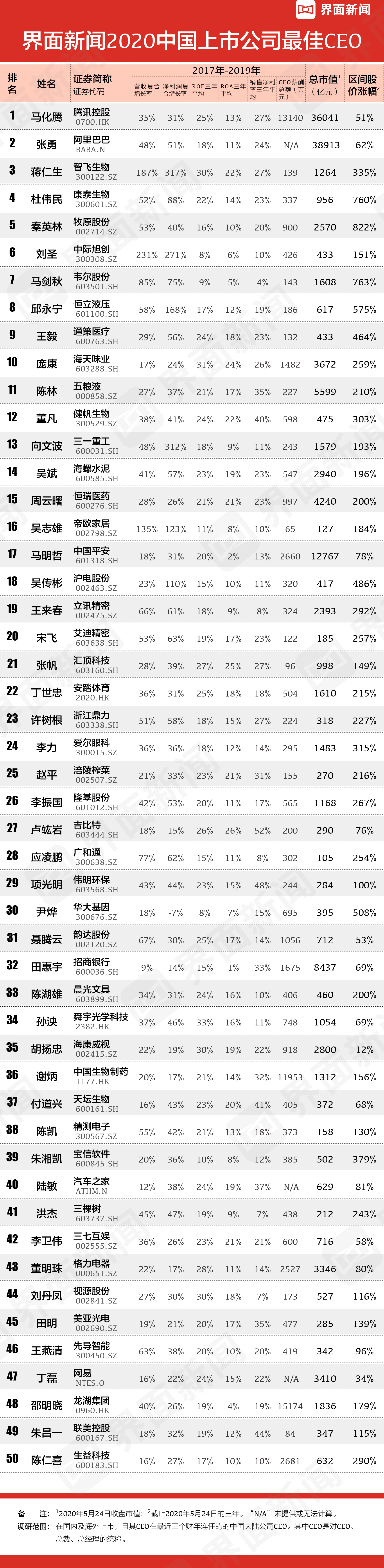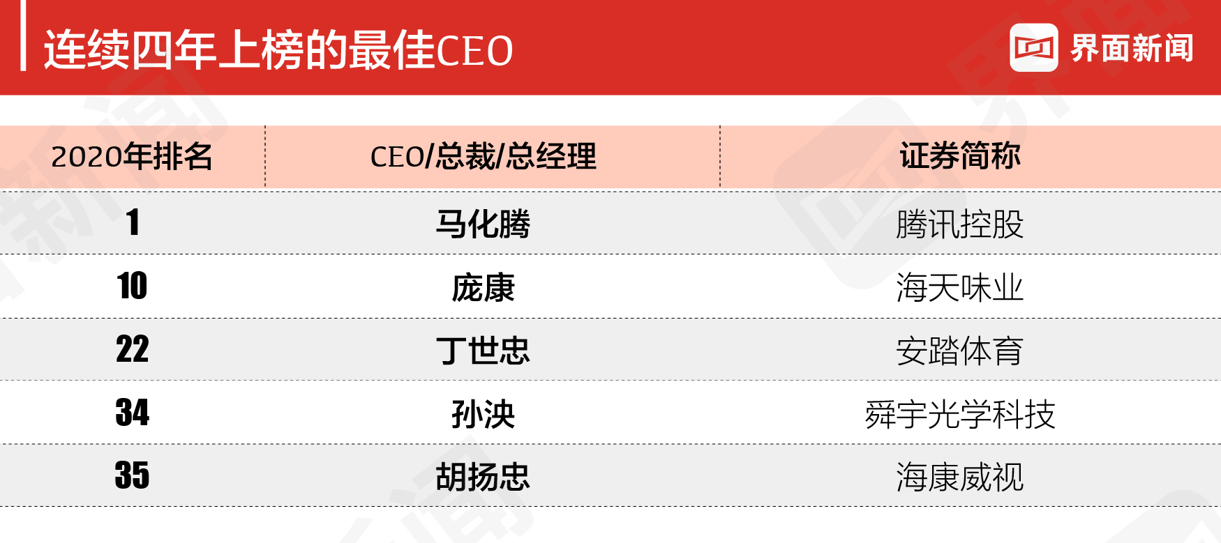 - 2020界面新闻上市公司最佳CEO