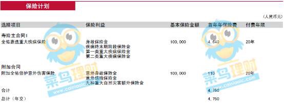 M小姐,52岁,事业单位内勤人员,之前已投保了国内A公司重疾险,保障额度10万人民币,20年供款,年供保费4,750人民币。同时附加了一个意外伤害保险,保障额度10万人民币。