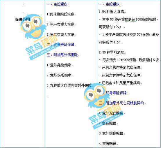 从保障范围来看,国内A公司重疾险保障34种重疾,8种轻症疾病。且国内对重疾的界定较为严格。而香港A公司重疾险除了保障54种重疾外,还提供了35种早期危疾保障,因随着现在医学技术的提高,早期疾病的治愈率也提高了许多。
