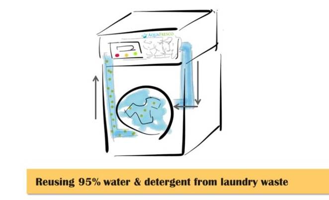 AquaFresco的工作就是过滤掉小部分的污水,然后将干净的水和洗涤剂回收进行二次利用。如果机器能像预期一般工作,同样约4.5升的水够洗6个月的衣服。这意味着,只有小部分的洗涤剂会被排放到了地表水供应系统中。