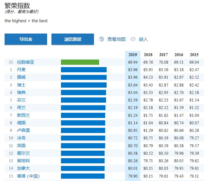 发达国家最重要的指标就是人均GDP。2019年,全球人均GDP排名中,拉脱维亚以18406美元排在第49位。