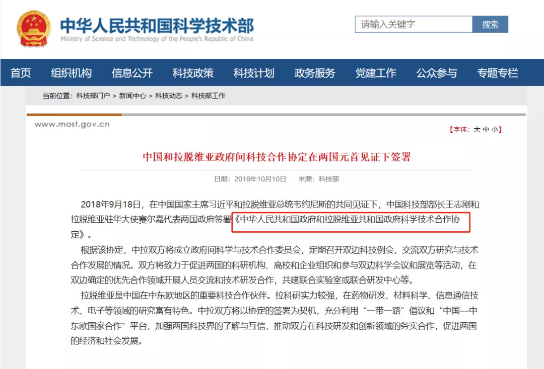 《中华人民共和国政府和拉脱维亚共和国政府科学技术合作协定》签署