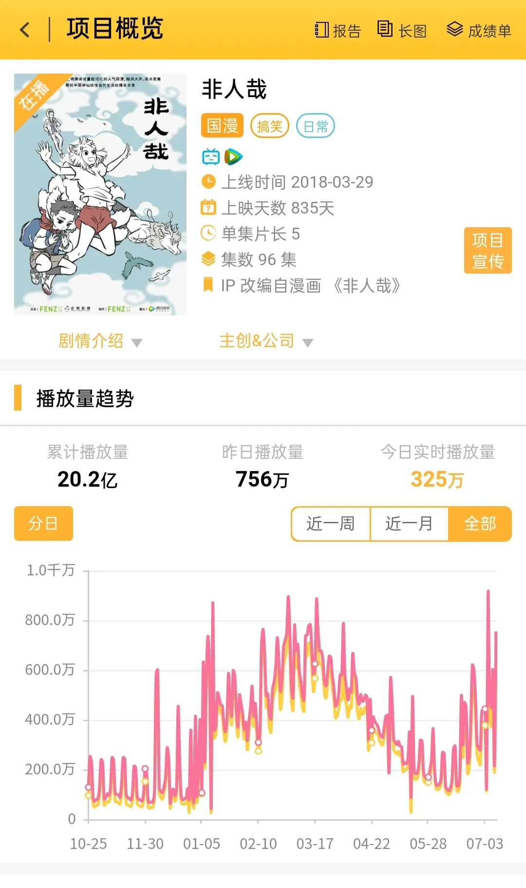 这部国产泡面番代表作于2018年3月29日在腾讯视频上线,在开播的3年间,受到二次元观众广泛好评。骨朵数据显示,截至今日,《非人哉》动漫以全网超20.2亿的播放量,居国产泡面番TOP1。