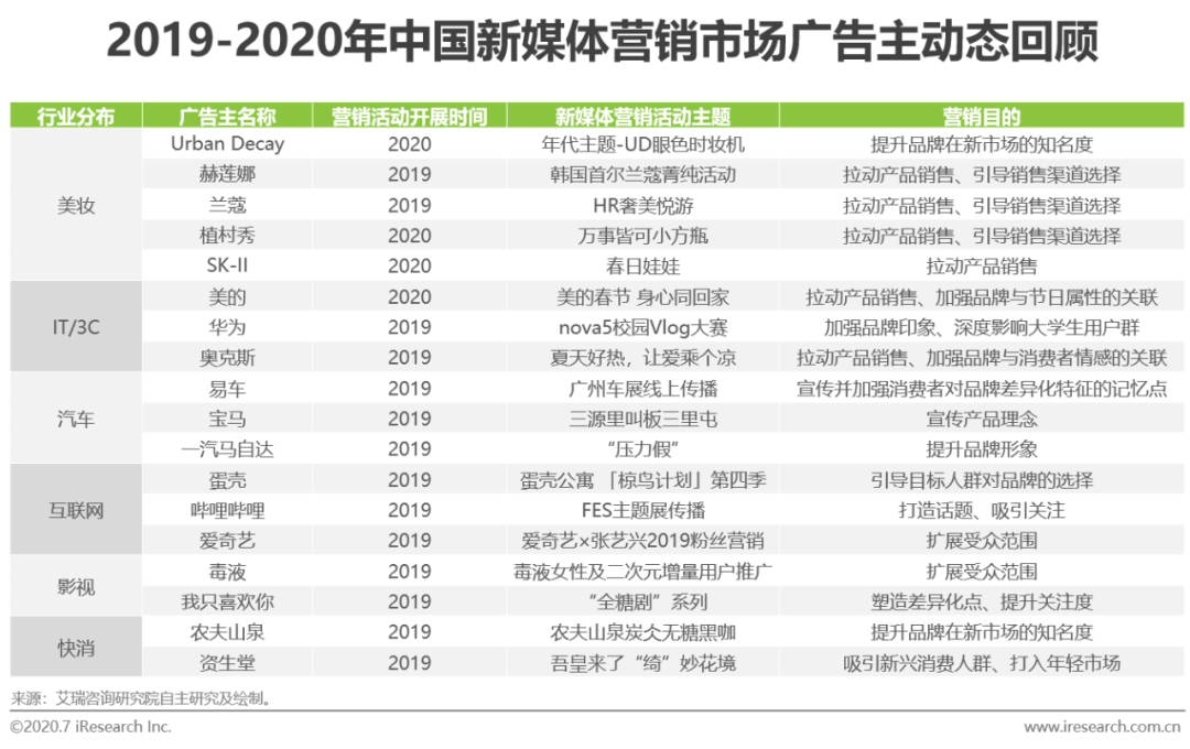 环境扫描:2020年新冠疫情的出现,使得消费者的注意力和时间更多地向线上倾斜,广告主也以此为风向标,将营销预算与投入更多地分配给线上渠道。而在内容形式、营销玩法上更具多样性与优势的新媒体营销,则进一步突显出能够借此吸引更多用户与其注意力的价值。