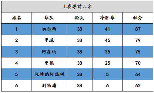 上赛季的前六名球队有四支球队依然出现在了本赛季的前六名中……