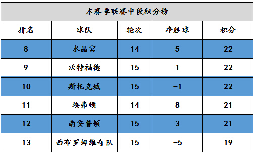 这很有趣,当我们把本赛季截至目前的积分榜排名同上赛季最终的排名做一个简单的对比时,我们就会发现,变化其实并不大。