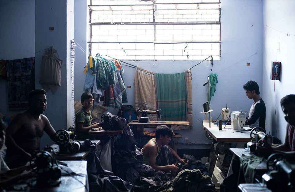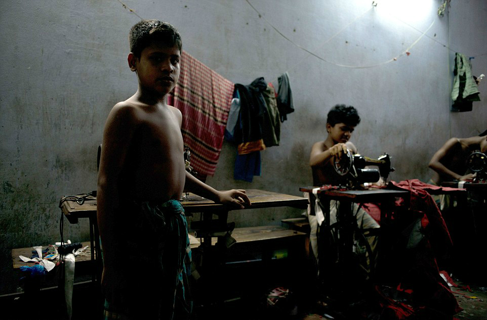 起早贪黑,缝制标签,这就是孟加拉国血汗工厂里成千童工的日常生活。虽然国内工厂的安全标准有所提升,但这些法规管理的灰色地带依旧一片灰暗。这些血汗工厂不仅向国内及印度市场供货,还承包了不少国际知名品牌的生产流水线,但通常,这些国际品牌也不知道他们的产品究竟从何而来。