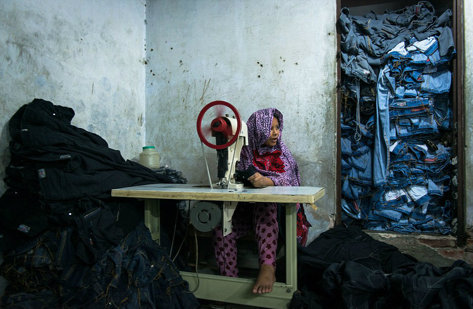 孩子们没时间上学,他们每天醒来就有成堆的工作等着他们,绣图案、缝标签、染织布和清理机器都得由他们完成。