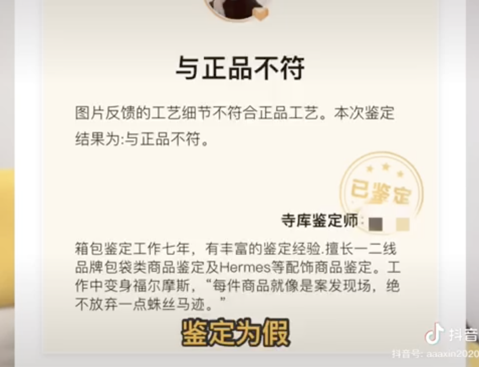 闫闯表示,通过阿酱星的视频,可以发现寺库寄出的包裹上没有防调包措施和专属标识,因此当消费者认为拿到的商品是假货时,无论是平台还是消费者都很难证明消费者手上的包包就是在该平台销售的。也就是说,这既不利于消费者维权,也不利于平台自证清白。