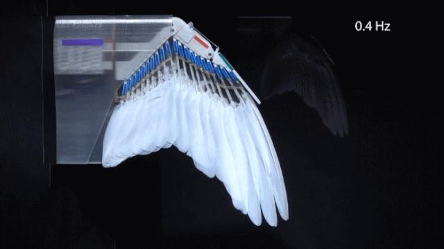 例如,在上升过程中,空气可以通过翅膀,产生一股升力。在随后的下降过程中,翅膀的各个部分闭合,产生更强大的下降力;同时,仿生雨燕通过收缩翅膀使自己变小,从而减少摩擦。