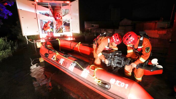 3个小时前,驻守无为市的上海跨区域增援攻坚专业队三分队,接到搜救指令,立即派出57名消防救援指战员、8辆消防救援车和11艘救生艇,火速赶往鹤毛镇集结。到达现场后,上海消防救援队立即与当地抗洪防汛人员对接,并派出航拍队伍对搜救区域进行侦查绘图,水上搜救专业队则进行船艇组装。