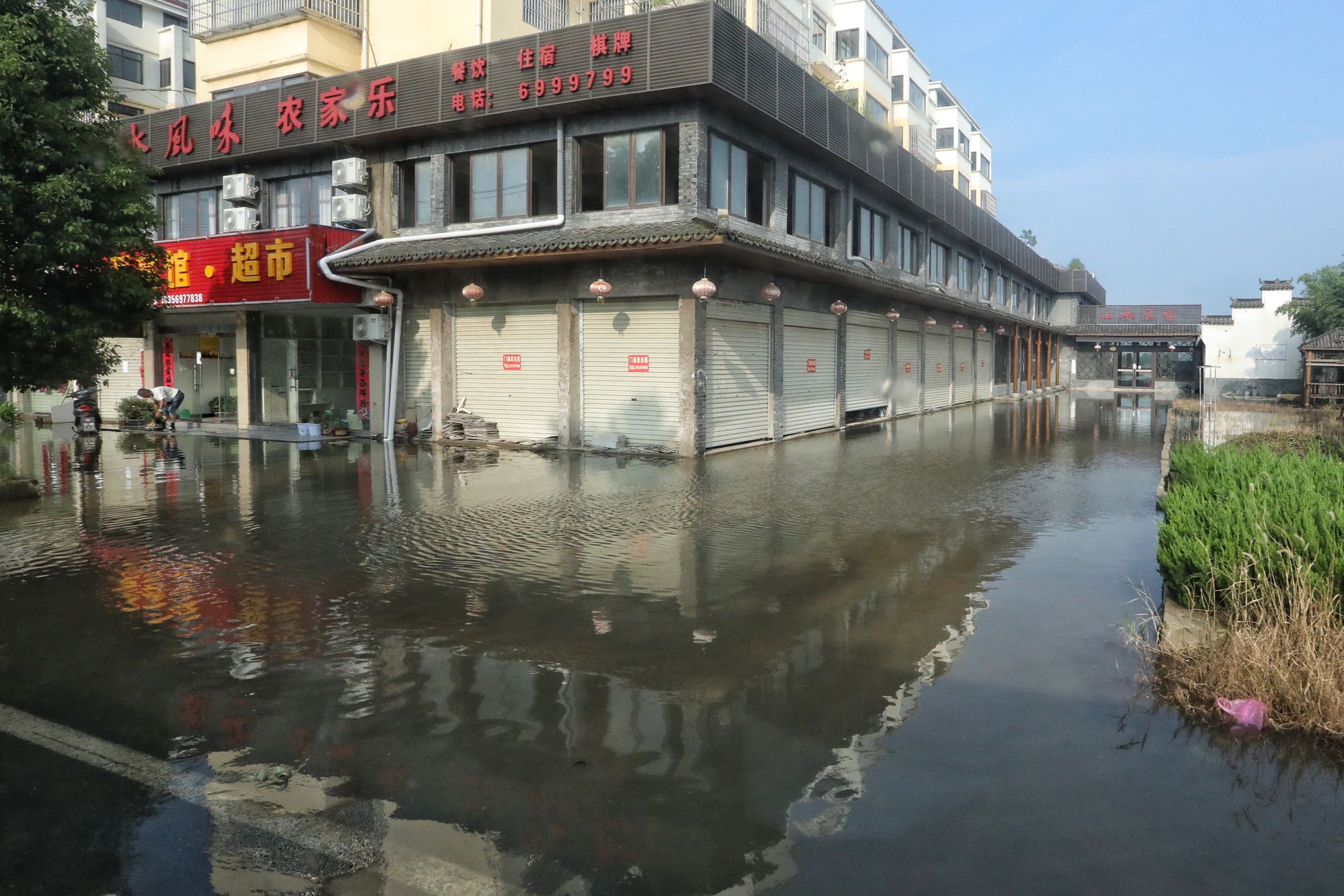 郑义赶紧叫老婆孩子一起拾掇家里值钱的物什,往二楼转移。短短半小时,河水已经灌进了镇里的主干道。