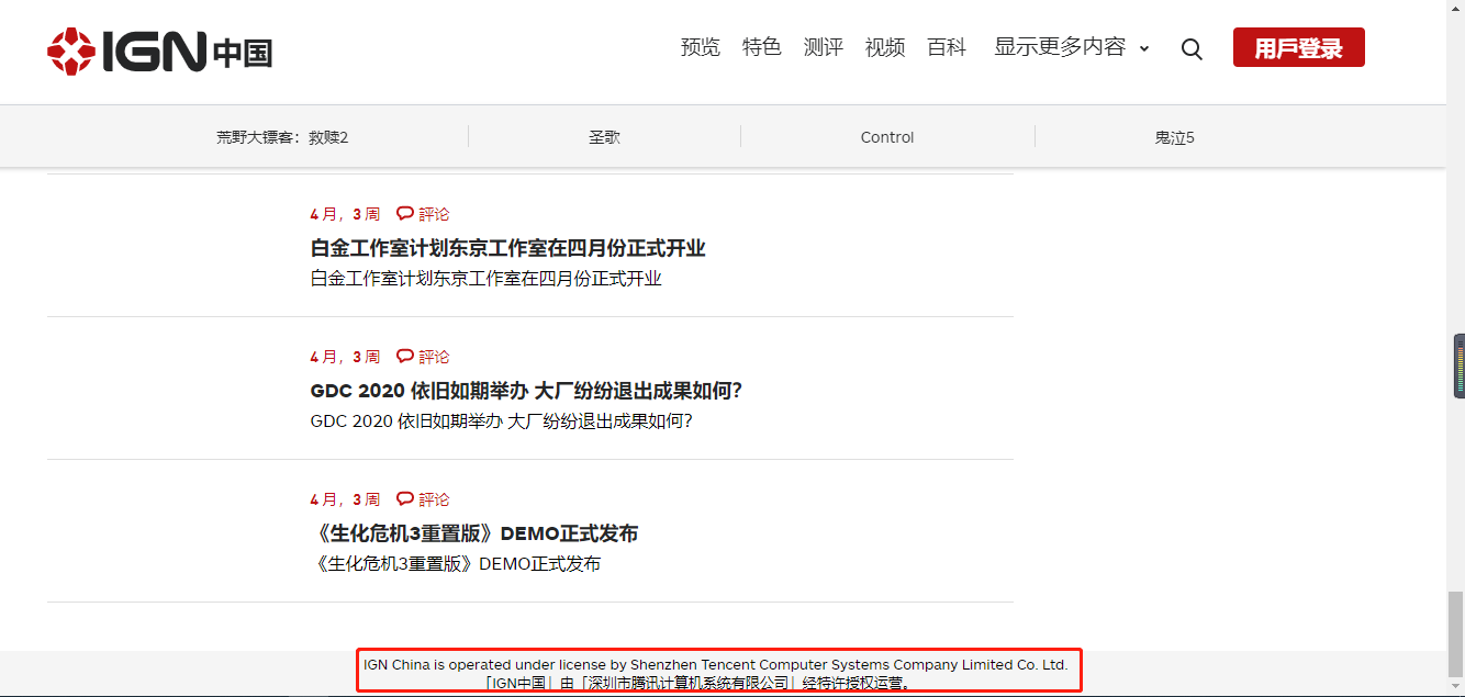 目前,IGN中国官网下特许授权运营方已更改为深圳市腾讯计算系统有限公司。