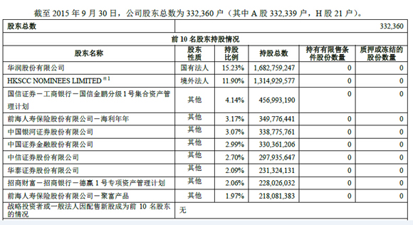 界面新闻查询万科最新股东列表发现,截至2015年9月30日,持有万科股份较多的券商包括:银河证券3.07%、中国证券金融股份有限公司2.99%,中信证券2.7%、华泰证券2.09%,招商财富2.06%。其中,中金和招商财富立场不明,其他三个券商应该是钜盛华收益互换的通道。但时隔三个月,万科股东名单肯定有重大变化,目前界面新闻未能获取最新的股东名单。