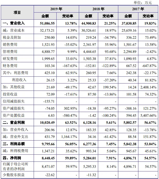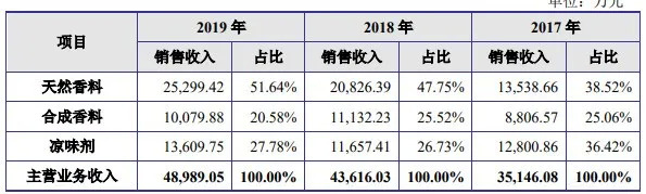 根据亚香香料此前发布的招股书,其2017年-2019年营收分别为3.7亿元、4.49亿元、5.11亿元,净利润分别为4896.71万元、5284.01万元、8448.45万元。