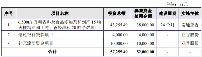 据悉,亚香香料本次募集资金5.2亿元,主要投向6,500t/a香精香料及食品添加剂和副产15吨肉桂精油和1吨丁香轻油和20吨苧烯项目。亚香香料在招股书中表示,该项目有助于新增生产基地,扩大公司香料的生产规模,解决公司主要产品面临的产能瓶颈对公司发展的制约,以满足全球香料香精市场快速增长的需求。