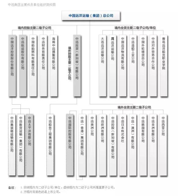 中远和中海是我国规模最大的两家航运企业,二者下属公司众多、股权结构复杂。为使读者清晰了解本次重组,航运界网特摘录重组之前,中远组织架构如下所示: