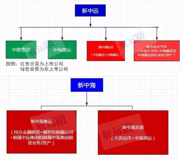 本次重组后,“新中远”和“新中海”两家企业的业务架构相对比较清晰,航运界网特绘制简图如下所示: