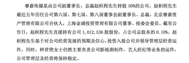 6月23日,欢瑞世纪突然发布公告,宣布其创始人、实际控制人钟君艳向董事会提交辞职申请,公司副董事长赵枳程将暂时代行董事长职责。
