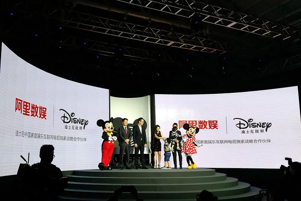 在2015年年底,迪士尼曾和阿里旗下的阿里数娱合作推出一款并不便宜的电视机顶盒“迪士尼视界”。这款电视机顶盒有着米老鼠的造型,连接到电视机以后就能够看到几乎迪士尼提供的全部内容,从电影、到电视动画、有声书等等。在这个系统中,用户还能够直接用天猫账号购买迪士尼的玩具、以及乐园的门票等衍生品。
