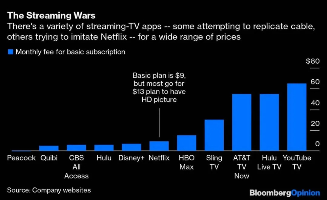▲各家流媒体服务基本套餐费用(图片来源:Yahoo)