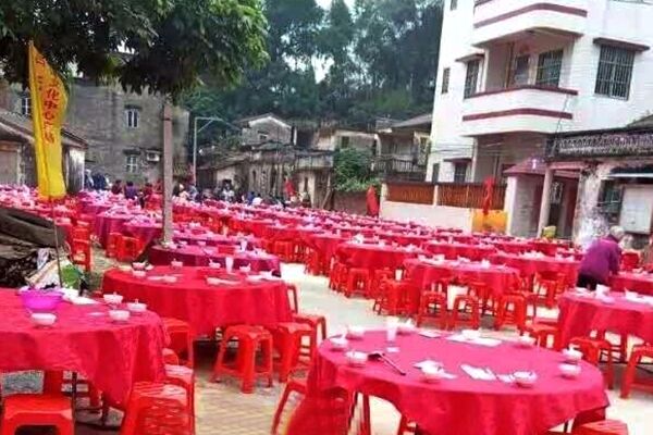 ▲图注:吕村内密密麻麻的摆了1400围酒席