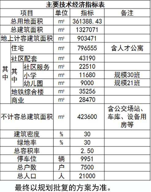 该地块总占地面积36.14万㎡,综合容积率2.5,总建筑面积约132.71万㎡,其中计容建面约90.35万㎡(住宅79.66万㎡,配套4.32万㎡,地铁综合楼3.53万㎡,商业2.85万㎡),不计容建面约42.36万㎡。