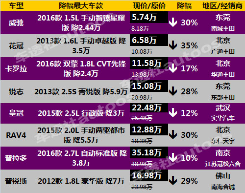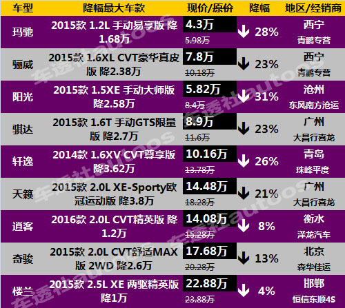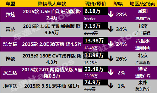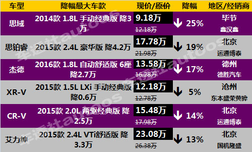 以下车透社梳理了12月份丰田、日产、本田三大日系车的降价榜,供大家参考。