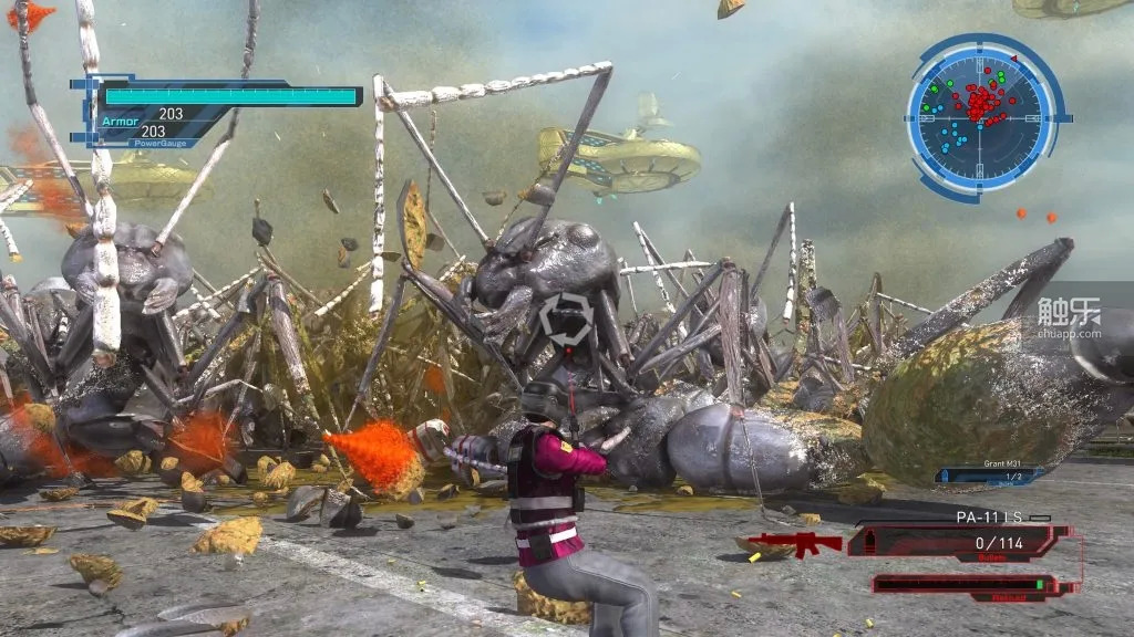 意外扎实的射击反馈让人能射得爽,多到无穷的敌人让人能爽得停不下来。当然,如果只是单纯的射爆,这种爽快感一般持续个把小时也就差不多了,要保持长久的吸引力,“地球防卫军”还需要——