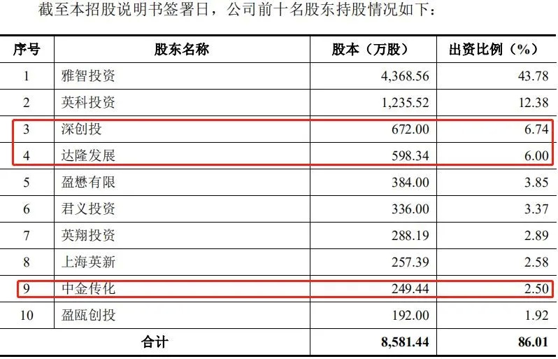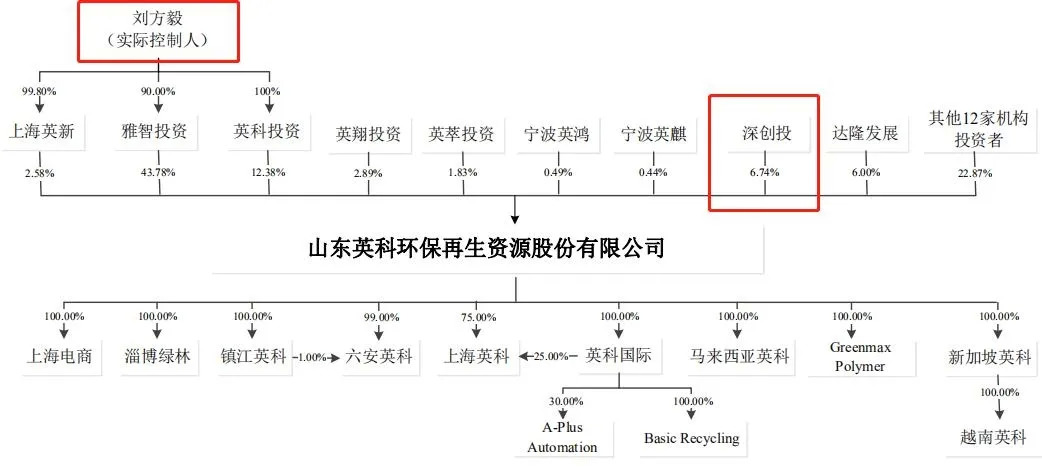 风云资本界注意到,深创投(深圳市创新投资集团有限公司)直接持有英科环保6.74%股份,其出资人包括大众公用(600635.SH)、七匹狼、中兴通讯(000063.SZ)等著名投资机构。