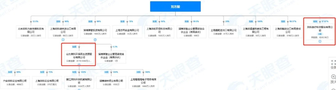 风云资本界(微信公号:sxkcg666)还注意到,刘方毅的投资布局不只有环保、医疗产业,天眼查股权穿透图显示,刘方毅在进出口贸易、建筑装饰、传媒等领域有布局。