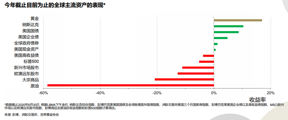 黄金投资收益则处于正增长态势,且相对安全。王立新称,上半年黄金跑赢了包括政府债券、股票、原油和大宗商品在内的其他所有大类资产。