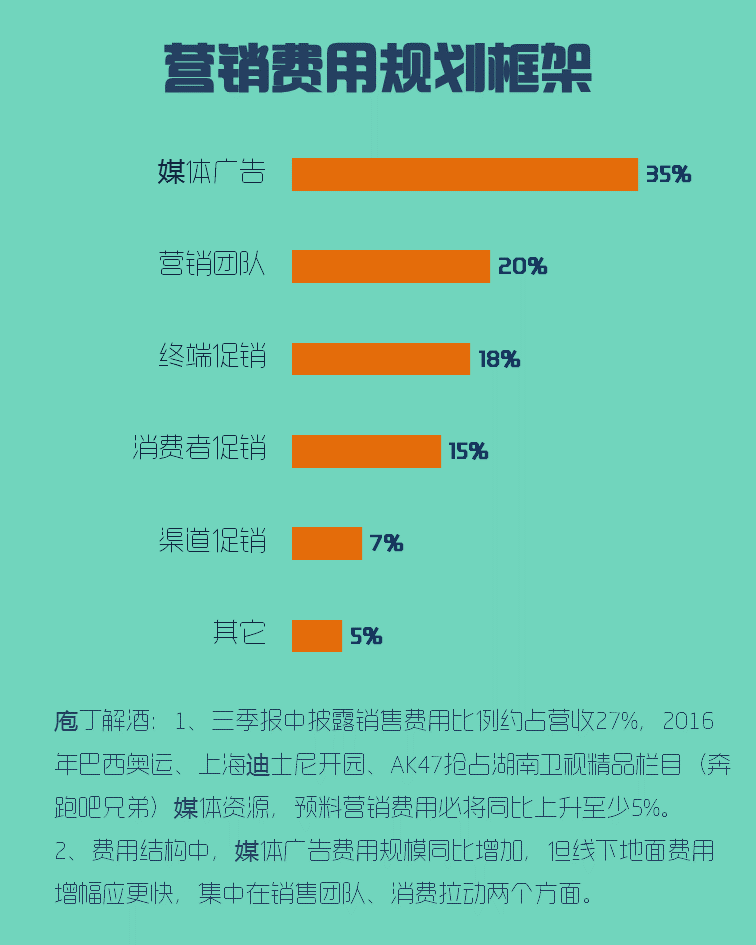 3、锐澳2016年营收规划预计在35亿左右(越保守越好),应预留出调整的时间与空间。